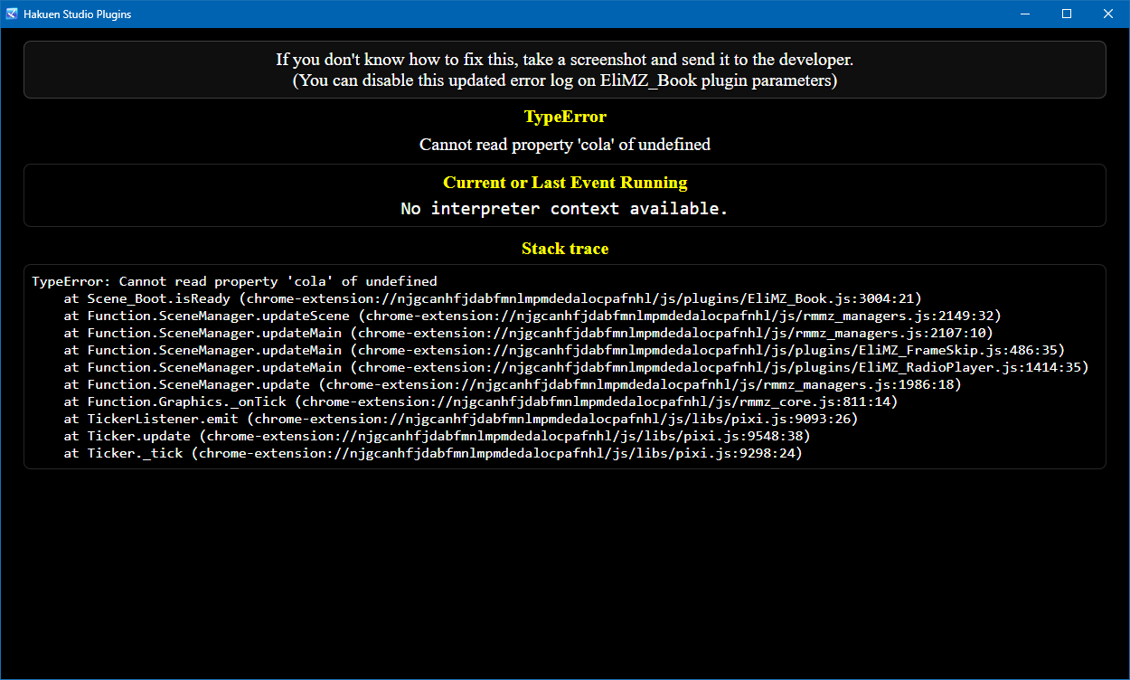 | Tags | core, eli-plugins, error, hakuen-studio, mz, No AI, plugins, RPG Maker, RPG Maker MZ, rpg-maker-plugin |
