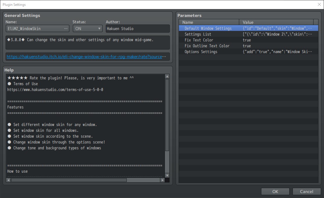 Hakuen Studio Window Skin Manager for RPG Maker MZ