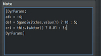 This plugin will let you handle parameter values dynamically through note tags of states and equipment! Support all types of parameters! Version 1.0.3 - 03/18/2021 - Fixed an issue that the dynamic pa...