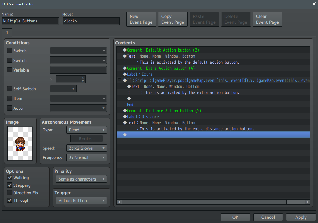 Unfortunately, the distance button only works for activating events with the normal priority.