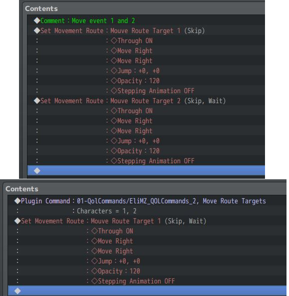 For example, let you apply the same movement route for more than one character, without the need of creating the same move route command for each character.