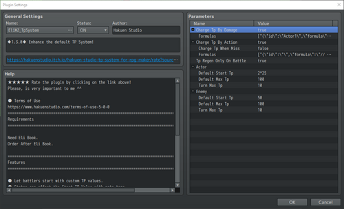 - Added a new note tag and plugin parameter: Charge Tp By Action Formula. This lets you customize how the target will gain TP when he uses a skill/attack/item.